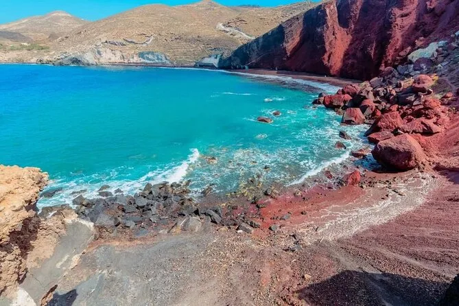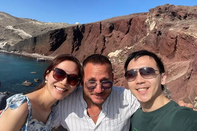 Zum Abschluss tauchten wir die Füße am Red Beach ins Wasser – man muss ein Stück über lose Steine laufen, also besser Sandalen mitnehmen, falls du so tollpatschig bist wie ich – und dann ging es nach Oia, um die berühmten Sonnenuntergangsfarben zu erleben. Es war voll, aber nicht zu viel; alle hielten einfach gemeinsam inne, als der Himmel rosa-orange leuchtete. Jemand in der Nähe summte leise vor sich hin (vielleicht griechisch? Ich konnte es nicht genau erkennen), und für einen Moment schien die ganze Insel den Atem anzuhalten. So friedlich hatte ich mich nicht erwartet zu fühlen. Am Ende brachte uns Nikos nach Einbruch der Dunkelheit direkt vor die Hoteltür – sandig, müde, aber irgendwie innerlich strahlend.