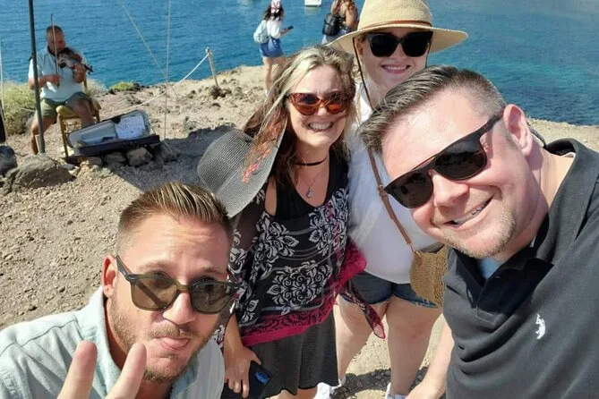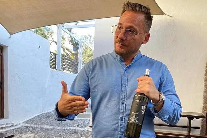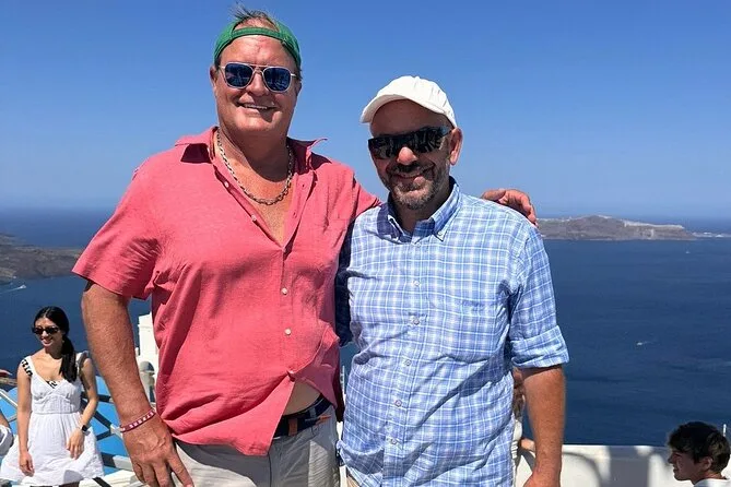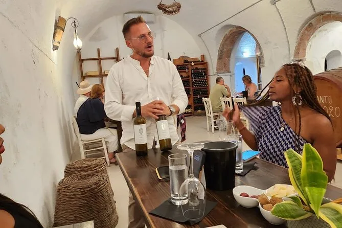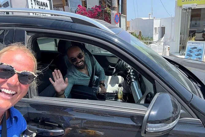 Dein Tag umfasst private Transfers auf Santorini mit einem englischsprachigen lokalen Guide, der alle Gebühren und Steuern übernimmt. Es gibt jederzeit Wasserflaschen, und die Abholung sowie Rückfahrt vom Hotel oder Kreuzfahrthafen sind inklusive – so musst du dich um nichts kümmern, auch nicht nach Sonnenuntergang.