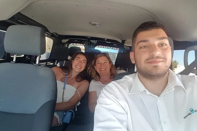 Dein Tag beinhaltet privaten, klimatisierten Transport mit Wasserflaschen, eine Santorini-Karte zum Nachverfolgen deiner Route (und vielleicht auch deiner kleinen Irrwege), sowie flexible Abholung und Rückfahrt vom Hotel, Hafen oder Flughafen – alles begleitet von einem lokalen Fahrer, der den Tag ganz nach deinen Wünschen gestaltet.