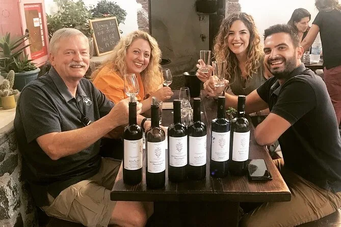 Erkunde Santorinis Vulkanweingüter mit einem lokalen Guide, probiere zehn einzigartige Weine – darunter Assyrtiko und Vinsanto – in drei traditionellen Weingütern und genieße ein gemeinsames Abendessen im Freien mit deiner kleinen Gruppe. Freu dich auf Lachen bei geteilten Tellern, Kellerführungen mit erdigen Düften und Momente, die lange nach der Rückkehr von der Insel nachklingen.