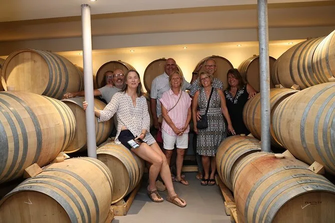 Dein Tag umfasst die Abholung für deine kleine Gruppe (bis zu acht Personen), geführte Besuche in drei traditionellen Weingütern auf Santorini mit Kellerführungen, Verkostungen von zehn lokalen Weinen inklusive Assyrtiko und Vinsanto, Wasser und Snacks unterwegs sowie ein Abendessen im Freien mit regionalen Spezialitäten – alle Steuern inklusive.
