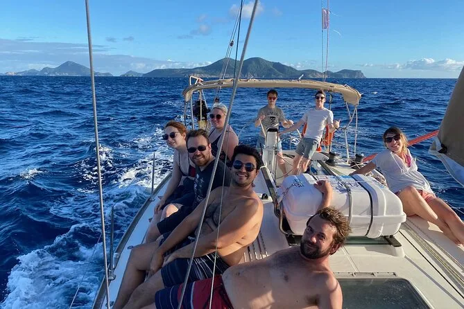 Dein Tag umfasst fast 9 Stunden auf einem 11,5 Meter langen Segelboot mit kompletter Ausrüstung; zwei Schnorchelstopps am Pain de Sucre und über einem Schiffswrack; den ganzen Tag über Wasserflaschen; Snacks wie Bananen und Madeleines; Aperitif mit Saft oder Punsch sowie Wurst- und Fischrillettes; ein hausgemachtes kreolisches Mittagessen mit Hähnchen Colombo, frischem Kurkuma und Ingwer; Obstsalat; Kaffee oder Tee nach dem Essen; einen schattigen Sitzbereich an Deck; eine motorisierte Dorfrundfahrt durch die bunten Häuser von Les Saintes; Zugang zu Toilette und Deckdusche an Bord; und einen freundlichen, professionellen Skipper, der dich sowohl beim Segeln anleitet als auch spannende Geschichten erzählt, bevor es am späten Nachmittag zurück nach Gourbeyre geht.