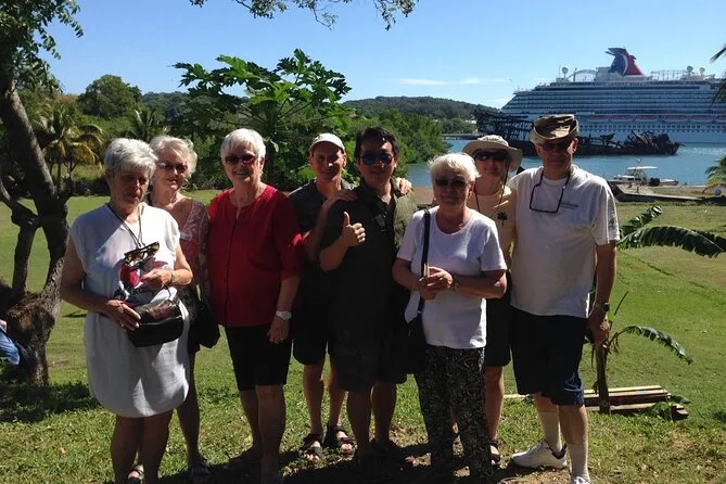 Kaum waren wir vom Schiff runter, spürte ich sofort die andere Luft – warm, leicht salzig, und irgendwo roch es nach frisch gebratenen Kochbananen. Ich sollte nach dem RT&T-Schild Ausschau halten, aber ehrlich gesagt, waren so viele Leute mit Schildern unterwegs, dass es ziemlich chaotisch wirkte. Doch Steve und sein Team fanden uns als Erste – einer grinste breit und rief meinen Namen, als wären wir alte Bekannte. Unser Guide Luis wartete schon am Van und scherzte, dass man Kreuzfahrer an ihren Schuhen erkennen kann.