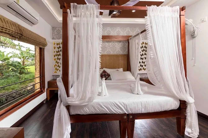 Dein Tag umfasst alle Mahlzeiten von Mittag bis Frühstück (inklusive Tee oder Kaffee und Snacks), WLAN an Bord deines privaten Hausboots, Mineralwasser während der gesamten Fahrt, eine optionale einstündige Kanalfahrt mit dem kleinen Boot bei vorheriger Anmeldung sowie eine Übernachtung mit Klimaanlage von 20 bis 6 Uhr, bevor du von der ruhigen Atmosphäre der Kerala-Backwaters geweckt wirst.
