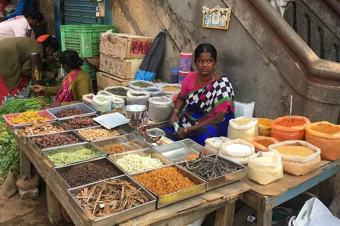 Dein Tag beinhaltet alle Eintrittsgelder und Steuern, geführte Spaziergänge mit einem englischsprachigen lokalen Guide durch Paläste, Tempel, Märkte und Handwerkswerkstätten; dazu Kaffee oder Tee und ein klassisches südindisches Frühstück in einem bekannten Restaurant nahe dem KR Market, bevor der Tag am frühen Nachmittag endet.