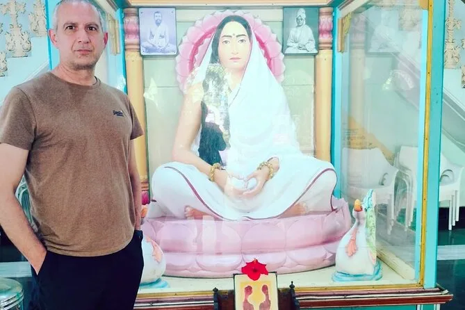 Danach schlenderten wir durch enge Gassen zum Ramakrishna Math. Dort war es ruhiger – fast schon zu still nach dem Tempeltrubel. Unser Guide erzählte, wie Ramakrishna daran glaubte, dass alle Religionen zur gleichen Wahrheit führen. Ein alter Mann in Weiß lächelte uns beim Vorbeigehen an; er sagte nichts, aber es fühlte sich an, als wüsste er genau, warum wir da waren (oder er mochte einfach Touristen). Weiter ging’s zum Jain-Tempel Vasupujya Swami – kühle Marmorböden und sanfte Schatten. Ich flüsterte „Namaste“, wahrscheinlich falsch ausgesprochen; Arjun grinste und meinte, die Mühe zählt.