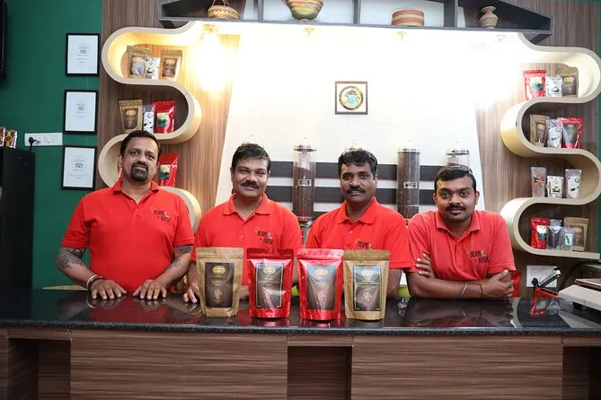Erkunde die grünen Hügel von Coorg auf der Mercara Gold Plantage mit Einheimischen, die spannende Geschichten und Witze über Kaffee und Gewürze erzählen. Riech frischen Kardamom, besuche das besondere World Coffee Museum, sieh zu, wie Bohnen von Hand sortiert werden – und wärme dich zum Schluss mit einer Tasse frisch gebrühtem Filterkaffee, während draußen der Regen fällt.