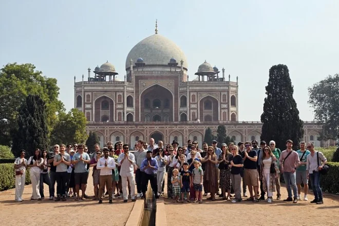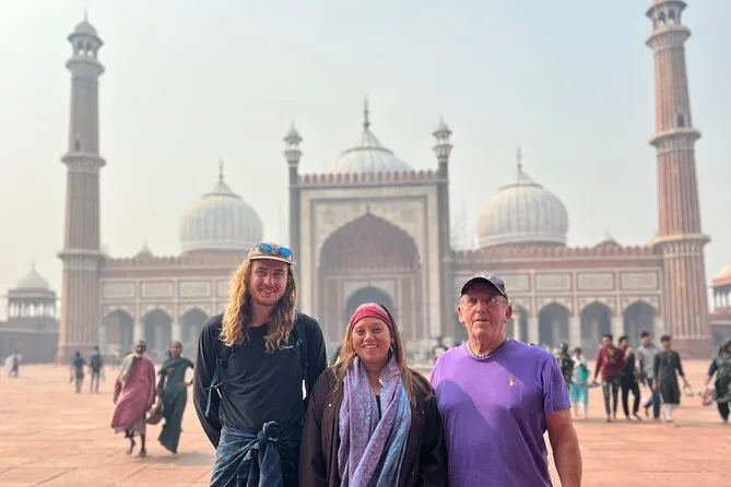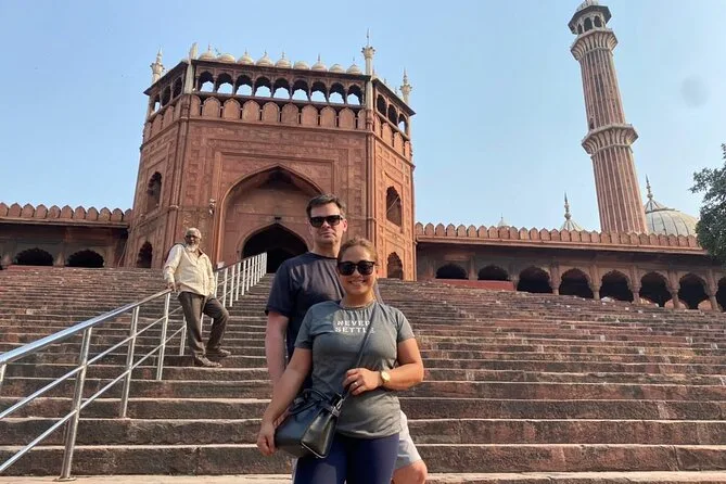 Tauche ein in Delhis wilde Gegensätze – Rikschafahrten durch die verwinkelten Gassen von Alt-Delhi, barfuß ruhige Momente an der Jama Masjid, gemeinsames Essen im Gurudwara Bangla Sahib und stille Augenblicke unter mogulischen Bögen. Mit einem lokalen Guide und bequemer Abholung erlebst du den Puls dieser Stadt hautnah.