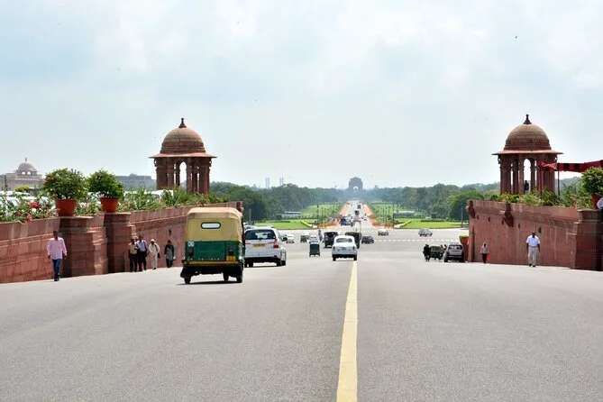 Du siehst Jama Masjid, Chandni Chowk (mit Rikschafahrt), das Rote Fort (von außen), Gurudwara Bangla Sahib, India Gate, Parlament (von außen), Rashtrapati Bhavan (von außen), Humayuns Grab, Lotus-Tempel und Qutub Minar.