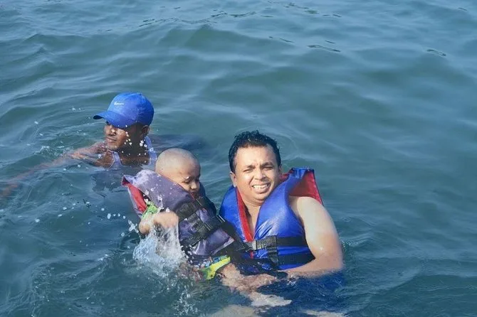 Es gab noch mehr: Parasailing (der Wind rauschte so laut in den Ohren, dass ich mein eigenes Lachen kaum hörte), Bananenbootfahrten, bei denen wir absichtlich ins Wasser fielen, einfach weil es sich so gut anfühlte, loszulassen. Wir entdeckten auch Delfine – nicht nah genug zum Berühren oder für spektakuläre Sprünge, aber man konnte ihre Rücken über den Wellen sehen, wenn man gegen die Sonne blinzelte. Zum Mittagessen gab es einfaches Goan-Curry mit Reis, serviert auf Metalltellern, während alle ihre Lieblingsmomente des Tages austauschten. Ein Onkel schlief auf der Rückfahrt im Schnellboot ein, sein Schnarchen wurde nur von den Möwen übertönt.