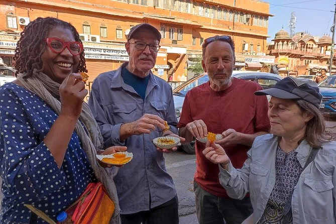 Dein Tag umfasst geführte Spaziergänge durch Jaipurs Altstadt mit Besuchen bei Handwerkern, Verkostungen frisch zubereiteter Streetfood-Snacks und Masala Chai in den Pausen sowie unbegrenzt Flaschenwasser während der gesamten Tour.