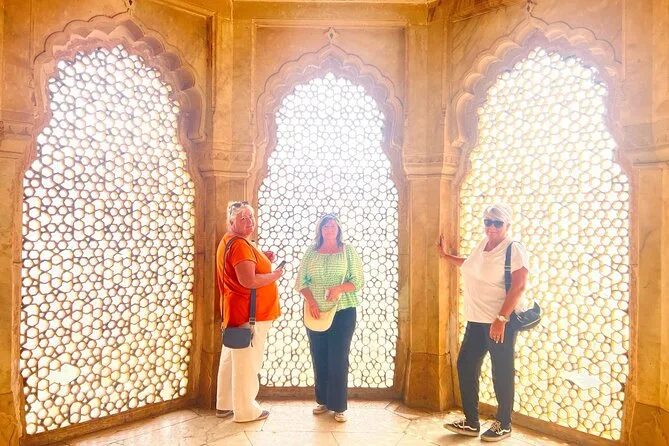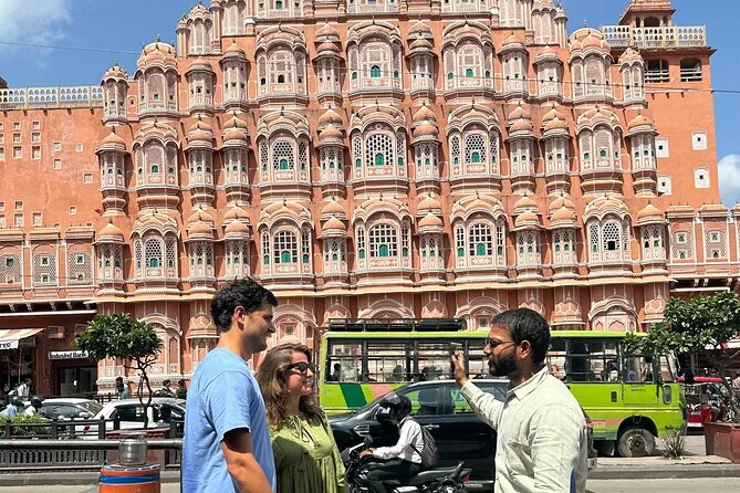 Dein Tag umfasst private Abholung vom Hotel oder jedem Ort in Jaipur mit klimatisiertem Fahrzeug, englischsprachigem Fahrer und Guide; Wasserflaschen während der Tour; Masala- oder schwarzer Tee bzw. Kaffee im Wind View Cafe; alle wichtigen Stopps wie Hawa Mahal (außen), Jantar Mantar, City Palace, Jal Mahal; plus ein praktischer Blockdruck-Workshop, bevor du an deinem Wunschort in der Stadt abgesetzt wirst.
