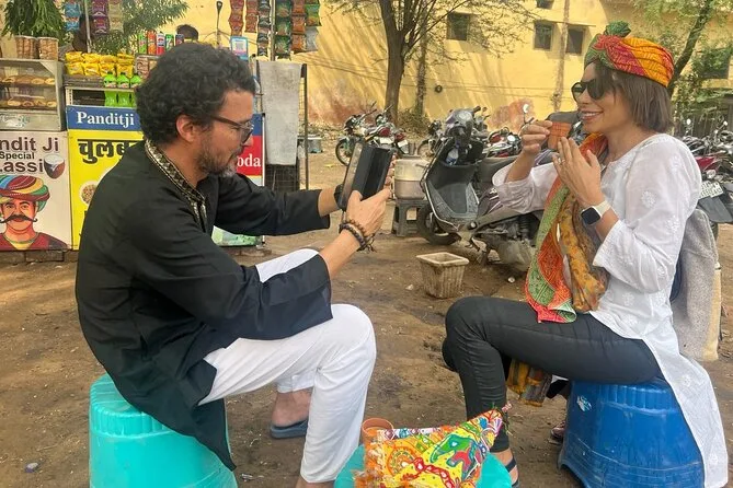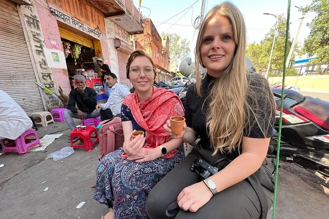Weiter ging’s zum Hawa Mahal – allerdings nur von außen, was völlig reicht, denn die rosafarbenen Wabenfenster sind schon aus der Ferne fast überwältigend. Gegenüber gibt es ein kleines Wind View Cafe, wo wir uns auf den Balkon quetschten und Chai tranken. Der Tee war süß und würzig, und ehrlich gesagt hätte ich dort den ganzen Morgen sitzen und die vorbeirasenden Rikschas vor dem Palast beobachten können. Priya erzählte, warum die königlichen Frauen früher von diesen Fenstern aus das Straßenleben beobachteten – wegen Privatsphäre und Tradition – aber ich war zu sehr damit beschäftigt, wie das Licht auf den Sandstein fiel. Das lässt einen einfach nicht los.