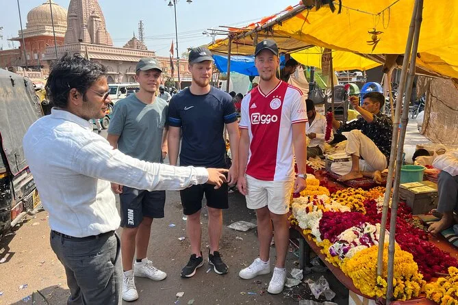 Unsere geführte Tour durch Jaipur startete mit einem kleinen Durcheinander – ich hatte versehentlich den falschen Hotelnamen angegeben (Anfängerfehler), doch unser Fahrer rief an und fand uns trotzdem. Er war total entspannt und freundlich. Der erste Halt war der Blumenmarkt – nicht der typische Postkartenmarkt, sondern echtes, lautes und duftendes Chaos. Überall Ringelblumen, Leute, die Preise riefen, die ich kaum verstand, und der Jasminduft, der an meiner Kleidung klebte. Unsere Guide Priya kaufte ein paar Blumen für ihre Großmutter und zeigte uns, wie die Einheimischen sich mit Blumen begrüßen. Ich versuchte es nachzumachen und hätte fast die Hälfte des Straußes fallen lassen.