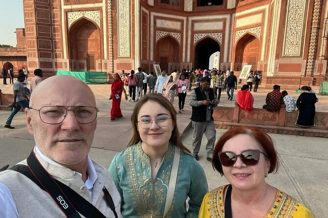 Mit 3:30 Uhr morgens hätte ich nie gedacht, so wach zu sein, doch da standen wir – ich blinzelte in die leere Straße von Jaipur, während unser Fahrer winkte und uns eine Flasche Wasser reichte. Im Auto war es still und fast zu kühl durch die Klimaanlage, und ich dachte darüber nach, wie ungewöhnlich es ist, eine Stadt vor Sonnenaufgang zu verlassen. Vier Stunden später (mit zwei Snackpausen – einmal Samosa, einmal süßer Chai) kamen wir in Agra an, gerade als der Himmel rosa wurde. Unser Guide Sanjay begrüßte uns mit einem breiten Lächeln und einem Schal um den Hals, als hätte er den ganzen Morgen auf uns gewartet. Er führte uns direkt zu den Toren des Taj Mahal – noch keine Warteschlangen – und ich schwöre, die Luft hatte eine seltsame Stille, die alles irgendwie weicher wirken ließ.