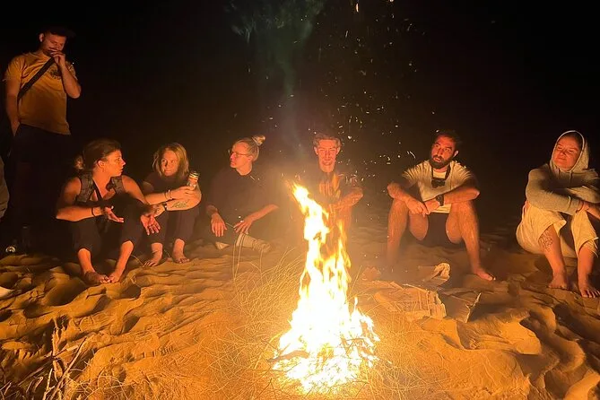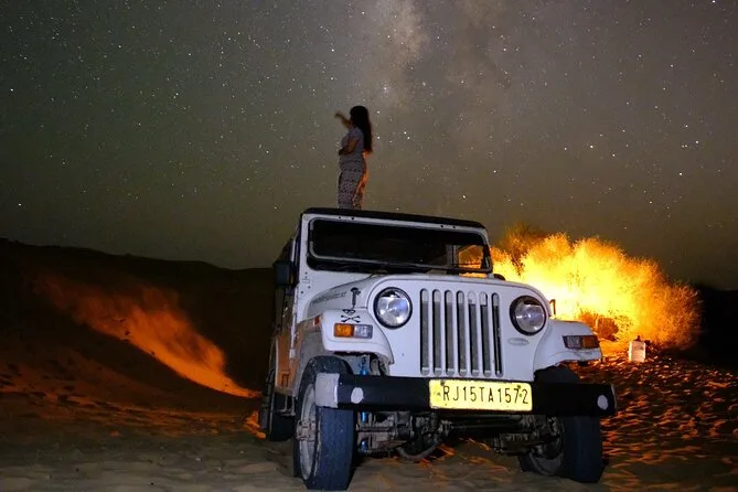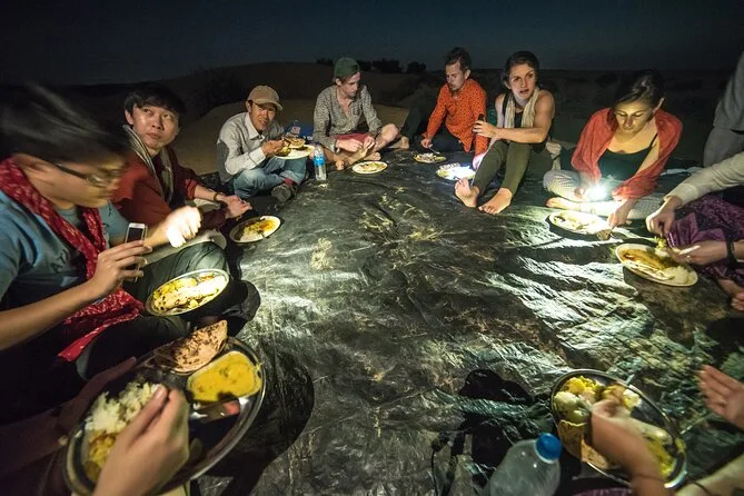 Der Sonnenuntergang war still – keine Menschenmassen, nur unsere kleine Gruppe auf dem kühlen Sand, während alles erst golden, dann rosa wurde. Direkt danach gab’s Abendessen: frische Pakoras, Chapati und Dal, über offenem Feuer von einem der Guides zubereitet (ich durfte sogar Chapati wenden – keine gute Idee). Wir aßen unter einem Himmel, der mit jeder Minute dunkler wurde, bis plötzlich mehr Sterne am Firmament funkelten, als ich je gesehen habe. Gegen 21:30 Uhr stiegen wir wieder in die Jeeps, um zurückzufahren, noch den Sand aus der Kleidung klopfend.