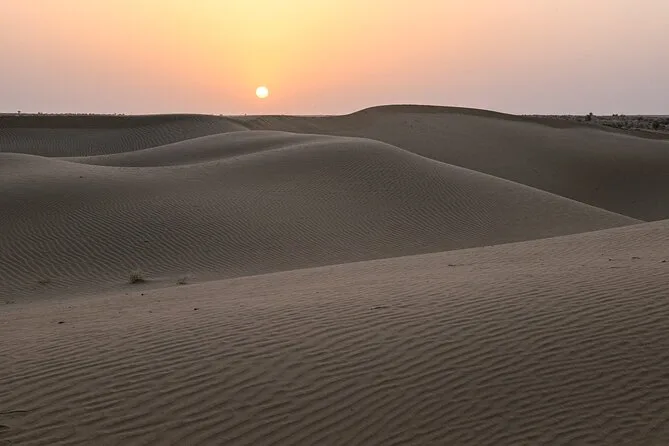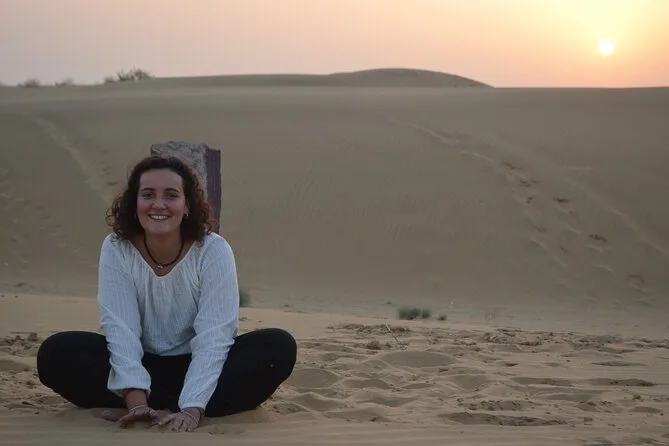 Wer Jaisalmers Wüste ohne Touristenmassen erleben möchte, ist hier genau richtig. Versteckte Orte wie Khaba Fort und Dedha Oase, Kamelritte durch echte Dünen, Essen am Lagerfeuer und ein unvergesslicher Sonnenuntergang mit Sternenhimmel – alles an einem Nachmittag.