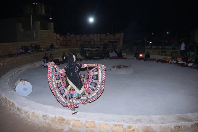 Deine halbtägige Tour umfasst die Abholung in Jaisalmer, eine Jeep-Fahrt zu den Kamelen, Snacks unterwegs, eine abendliche Kamelsafari durch die Dünen bei Sonnenuntergang, traditionelle Volksmusik und Tanz am Lagerfeuer sowie ein Buffet-Abendessen mit Tee oder Kaffee, bevor es unter dem Sternenhimmel zurückgeht.