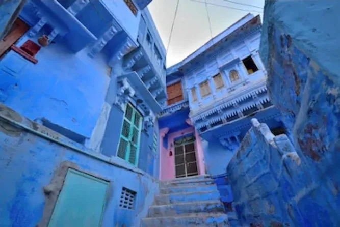 „Willst du das echte Blau sehen?“ grinste unser Guide und winkte uns in eine schmale Gasse, noch bevor die meisten Läden geöffnet hatten. Die Stadt erwachte gerade zum Leben – irgendwo klirrten die Teetassen eines Chai-Verkäufers, und die Luft war noch angenehm kühl auf der Haut. Wir schlenderten durch verwinkelte Gassen, in denen jede Wand in einem anderen Blauton leuchtete, mal verblasst und abblätternd, mal frisch gestrichen von den Frühaufstehern. Immer wieder blieb ich stehen, um Fotos zu machen, während die Sonne langsam über die Dächer kroch und ich Frauen beim Treppenfegen oder Kinder beim Hundeverjagen entdeckte.