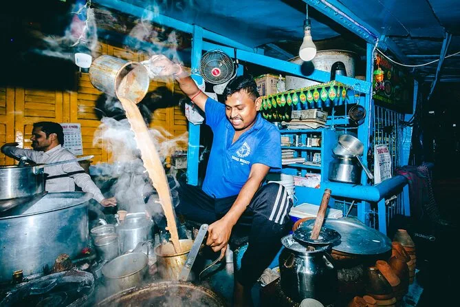 Dein Abend startet mit dem Treffen deines lokalen Food-Guides an der Esplanade U-Bahn-Station. Alle U-Bahnfahrten und Fahrten zwischen den Stationen (inklusive einer traditionellen Holzrikscha) sind inklusive, ebenso Flaschenwasser und indische Getränke. Du probierst über 13 bengalische Spezialitäten – von Mutton Kosha Curry über Kokosgarnelen bis zu Süßigkeiten – und endest in einem historischen Coffee House, bevor du auf eigene Faust zurückkehrst.