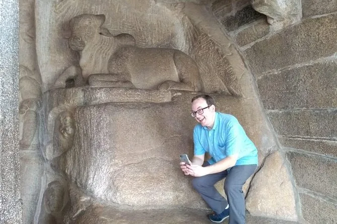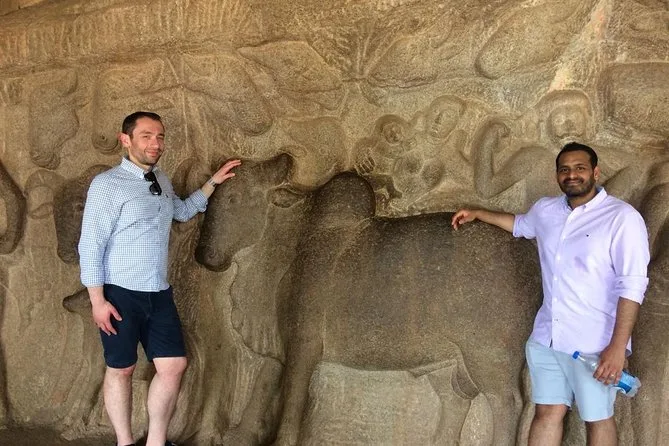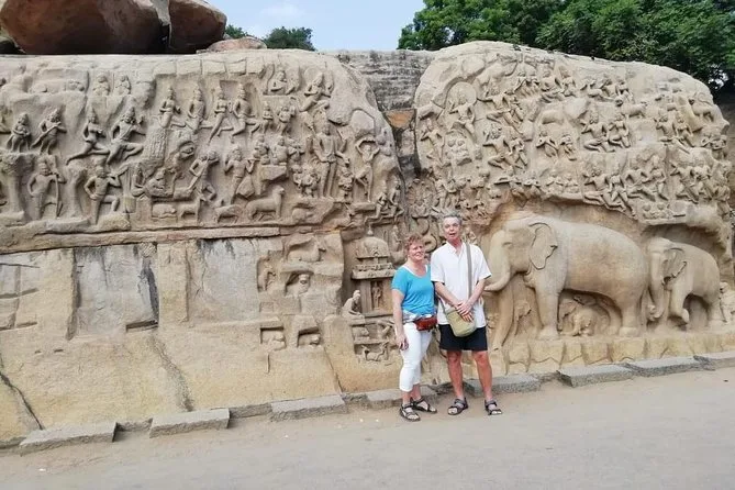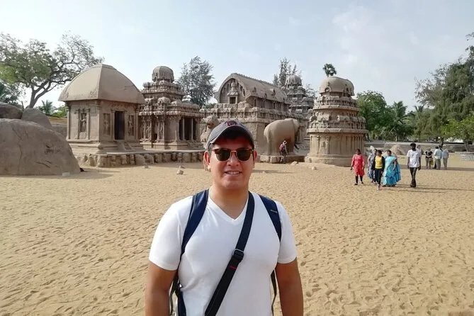 Du besuchst den Ekambareswarar-Tempel, Kailasanathar-Tempel, die Fünf Rathas, Arjunas Buße, Krishnas Butterball und das Shore Temple.