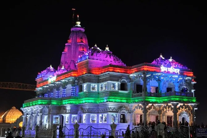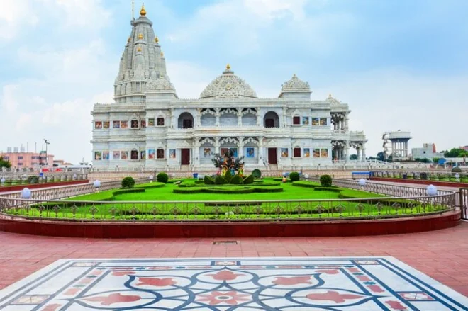 Du besuchst unter anderem den Krishna Janmabhoomi Tempel in Mathura und den Banke Bihari Tempel in Vrindavan.