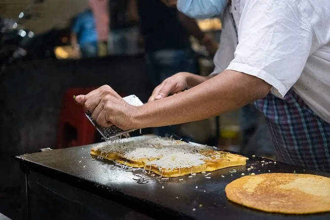 Dein Abend beinhaltet alle Transfers zwischen den Stationen per Taxi oder öffentlichen Verkehrsmitteln, unbegrenzte Street Food Verkostungen von herzhaften Snacks bis zu Süßem und Getränken entlang der Route sowie Geschichten und Tipps von einem englischsprachigen lokalen Guide, der jede Abkürzung in Mumbais lebhaftesten Vierteln kennt.