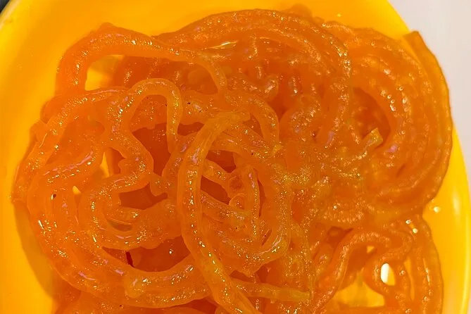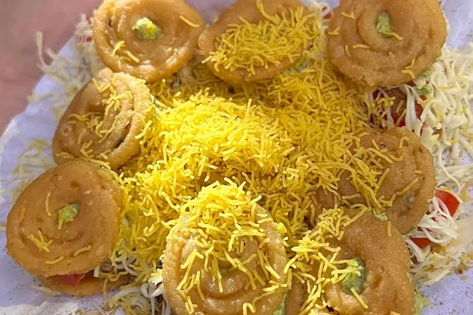 Dein Ticket beinhaltet alle Street Food Verkostungen auf der Route – chaats, Snacks wie Murukku-Sandwich und Thattu Idli, Süßes wie Pal Kova, kalte Getränke, Flaschenwasser sowie die Geschichten und Tipps deiner freundlichen lokalen Guide.