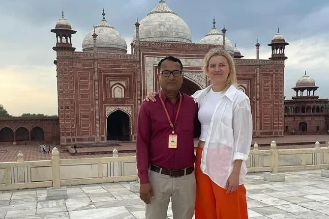 Mit Ihrem lokalen Guide umgehen Sie lange Warteschlangen am Taj Mahal. Lauschen Sie Geschichten von Kaisern und verlorener Liebe, während Sie die Marmorsäle in Ihrem eigenen Tempo erkunden. Inklusive Hotelabholung und Eintritt – plus Zeit für Chai oder Fotos, die Sie noch lange begleiten werden.
