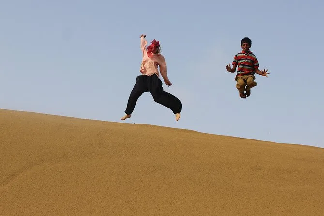 Als wir die Randgebiete von Jaisalmer hinter uns ließen, schlug mir sofort der trockene, erdige Duft der Wüste entgegen. Unser Guide Ba kannte jeden Kamel beim Namen – meins hieß Raju, ein sanfter Riese mit überraschend weichen Augen. Die Kamele stapften ruhig voran, ihre Hufe knirschten leise im Sand. Nach etwa einer Stunde kamen wir an einem kleinen Chai-Stand vorbei, wo Einheimische winkten und uns freundlich grüßten. Es fühlte sich an, als würden wir in eine andere Welt eintauchen – keine Verkehrslärm, nur Wind und ab und zu ein Ruf eines Wüstenvogels.