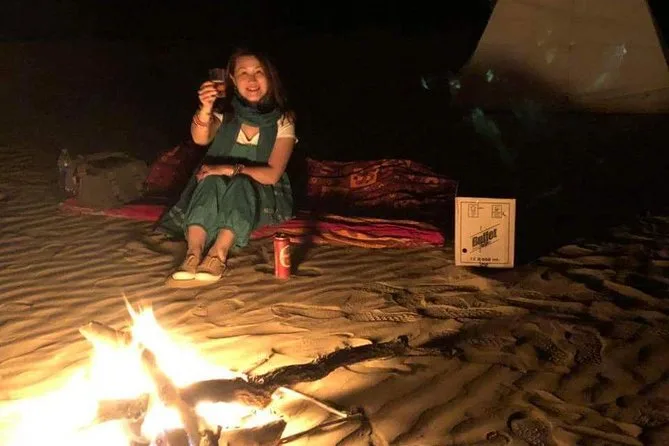 Deine Reise beinhaltet privaten Transport ab Jaisalmer (jeder Ort), Snacks, Flaschenwasser, Abendessen am Lagerfeuer mit Live-Musik und Kalbeliya-Tanz, Übernachtung unter freiem Sternenhimmel auf den Dünen (mit Bettzeug), Frühstück im Camp, geführte Kamelritte durch wenig besuchte Wüstengebiete, Dorfrundgang sowie den Rücktransfer nach Jaisalmer – alles für ein entspanntes Abenteuer.