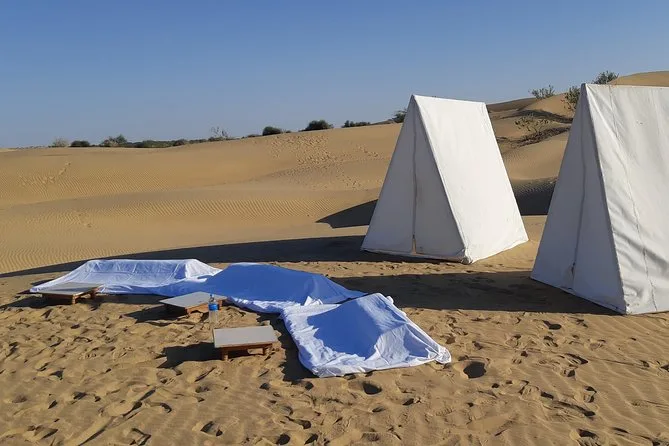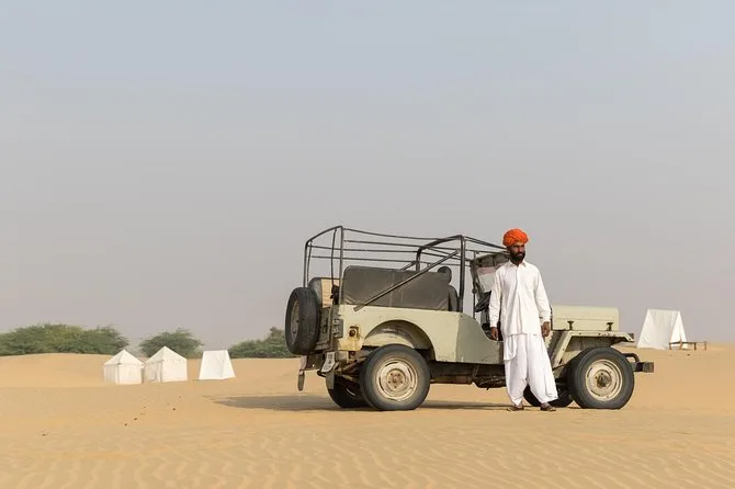 Erlebe eine Kamel-Safari tief in der stillen Thar-Wüste, genieße den Sonnenuntergang auf goldenen Dünen, iss am Lagerfeuer mit Kalbeliya-Tanz und Musik und schlafe unter freiem Sternenhimmel – ein echtes Rajasthan-Abenteuer abseits der Massen.