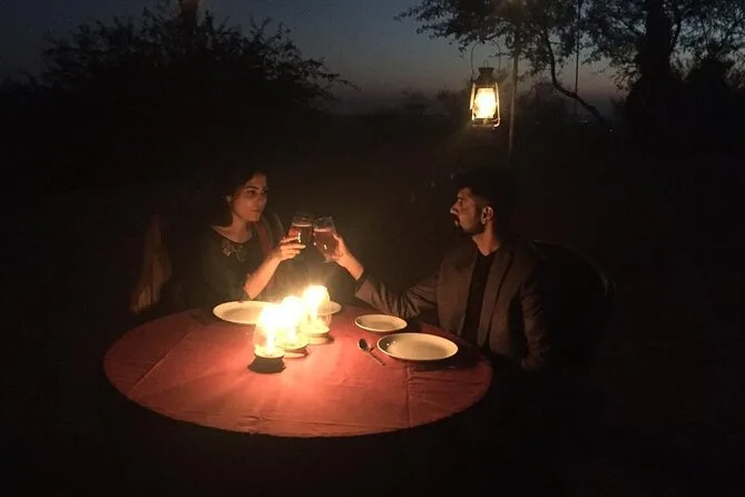 Als die Sonne langsam unterging, erreichten wir den Rand des Desert National Park. Der Himmel färbte sich gold- und rosarot, und ich erinnere mich, wie fein der Sand zwischen meinen Fingern war – noch warm von der Tageshitze. Wir genossen den Sonnenuntergang von einer Düne aus, die alle Geräusche zu verschlucken schien, bis auf eine entfernte Flöte, die im Wind klang. Am Abend zurück im Dorf Khuri gab es Abendessen am knisternden Lagerfeuer. Die Kalbeliya-Tänzerinnen wirbelten so schnell, dass ihre Röcke verschwammen; Live-Musiker spielten fast bis 22 Uhr, während wir scharfe Currys aßen und mit anderen Reisenden lachten. Später ging es mit dem offenen Jeep zurück zu unserem Camp auf den Dünen, wo ich mich auf meiner Liege unter einem sternenübersäten Himmel zurücklehnte – kein Dach, nur kühle Wüstenluft und Stille.