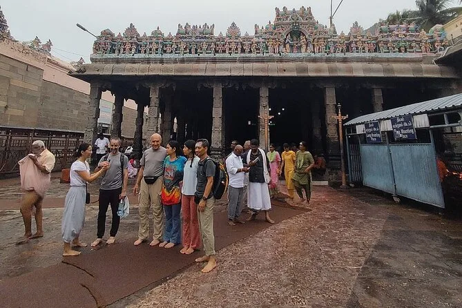 Erlebe Tiruvannamalai hautnah: Erkunde den Arunachala Tempel mit einem lokalen Guide, meditiere im Ashram, wandere heilige Pfade zu alten Höhlen und genieße den Ausblick über die Stadt mit frischem Obst. Momente, die dich willkommen heißen und still verändern.