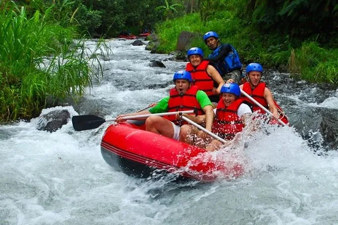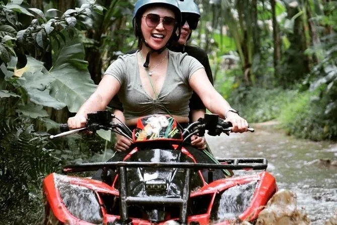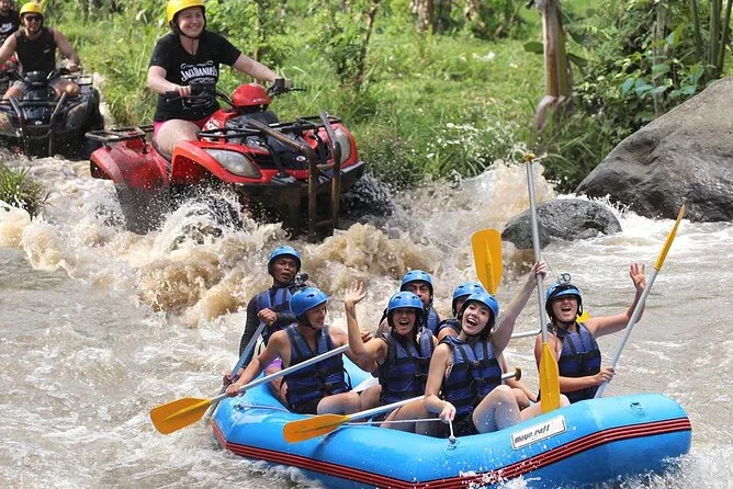 Erlebe Bali auf dem Quad durch Reisfelder und Dschungelpfade, danach Rafting auf dem Ayung-Fluss mit einem lokalen Guide. Freu dich auf matschigen Spaß, Lachen in der Gruppe, ein indonesisches Buffet-Mittagessen sowie bequemen Hoteltransfer für einen unvergesslichen Tag.