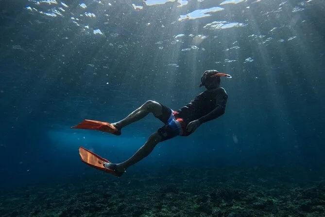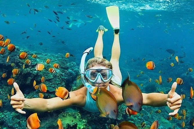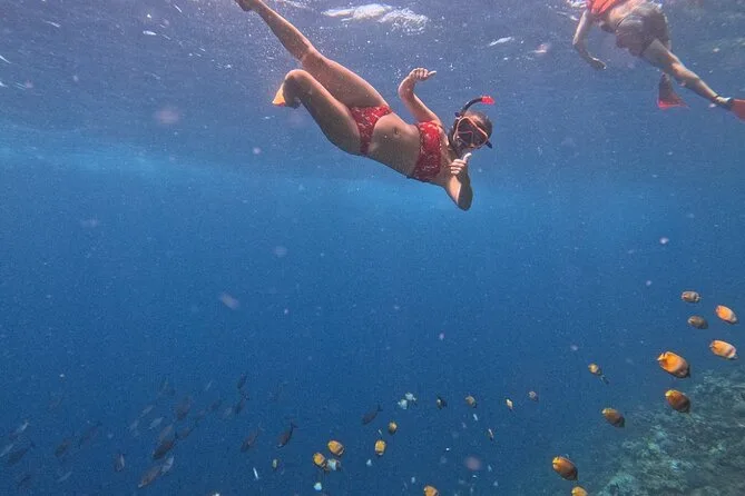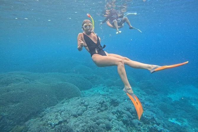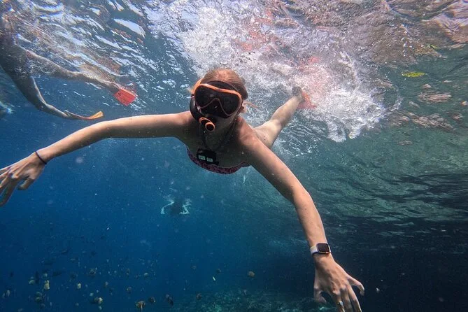 Dein Tag umfasst privaten, klimatisierten Transport mit Hotelabholung und Rückfahrt in beliebten Gegenden wie Ubud oder Kuta; komplette Schnorchelausrüstung; Betreuung durch einen englischsprachigen Guide; Wasserflasche; und ein balinesisches Mittagessen à la carte nach dem Schwimmen, bevor du erfrischt (und wahrscheinlich etwas sandig) zurück ins Hotel fährst.