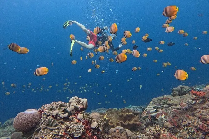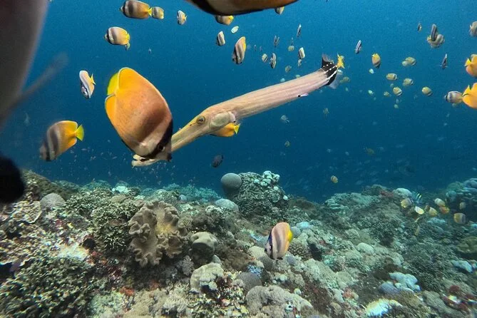 Erkunde zwei bunte Schnorchelspots – Blue Lagoon Beach und Tanjung Jepun – mit einem entspannten lokalen Guide. Schnorchelausrüstung ist inklusive, der Hoteltransfer macht’s bequem. Nach dem Schwimmen zwischen bunten Fischen und Korallen genießt du ein balinesisches Mittagessen am Meer, bevor du glücklich und mit salzigen Haaren zurückfährst.