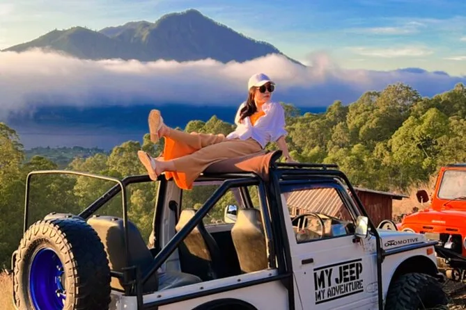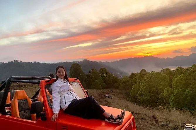 Nein, wandern ist nicht nötig – du fährst mit dem 4WD-Jeep zum Sonnenaufgang auf den Mount Batur.