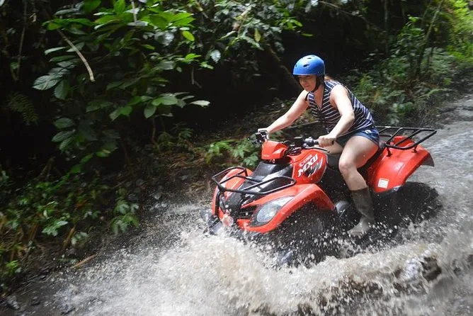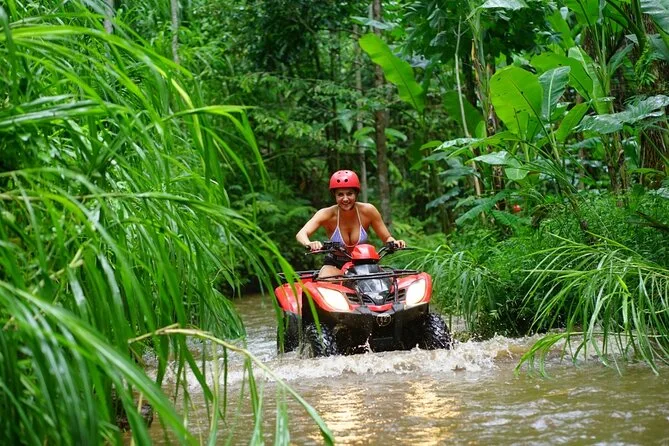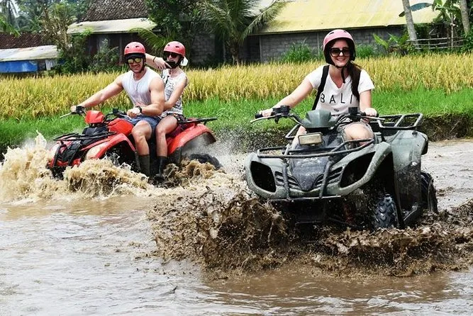 Dein Bali-Abenteuer startet mit der Abholung am Hotel, dann geht’s mit dem Quad durch Dschungelpfade und Reisfelder bei Ubud (Matsch inklusive). Nach einem indonesischen Buffet mit Talblick raftest du den Ayung River hinab, begleitet von einem lokalen Guide, der dir versteckte Schnitzereien und Wasserfälle zeigt. Ein Tag voller Spaß, Spritzern und unvergesslicher Momente.