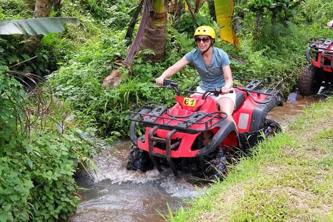 Dein Tag beinhaltet die private Abholung am Hotel in einem klimatisierten Fahrzeug, alle Sicherheitsausrüstungen für Quadfahren und Rafting bei Ubud, Betreuung durch lokale Profis während der Aktivitäten, etwa zwei Stunden Quadfahren gefolgt von zwei Stunden Rafting auf dem Ayung River (mit Gruppen von bis zu sechs Personen pro Boot), Versicherungsschutz während beider Abenteuer sowie ein indonesisches Buffet mit Talblick, bevor es bequem zurück ins Hotel geht.