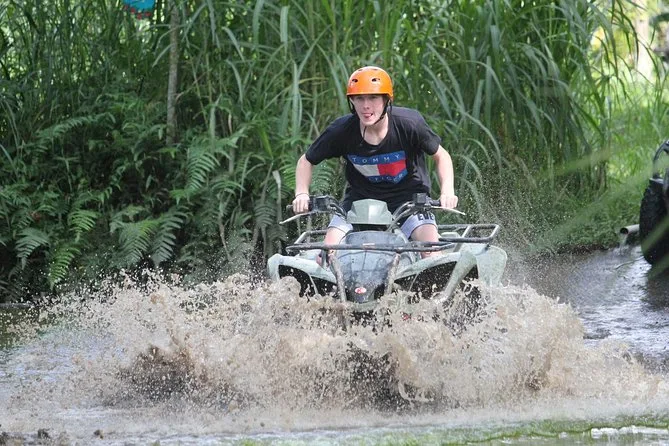 Dein Tag beinhaltet Hotelabholung und Rückfahrt, alle Eintrittsgelder und Versicherung, Helm und Stiefel für die Quad-Tour (plus Duschen danach), eine lokale Anleitung während der gesamten Tour sowie ein traditionelles balinesisches Mittagessen, bevor du sauber – aber wahrscheinlich mit einem breiten Grinsen wegen eines lustigen Erlebnisses auf der Strecke – zurückkehrst.