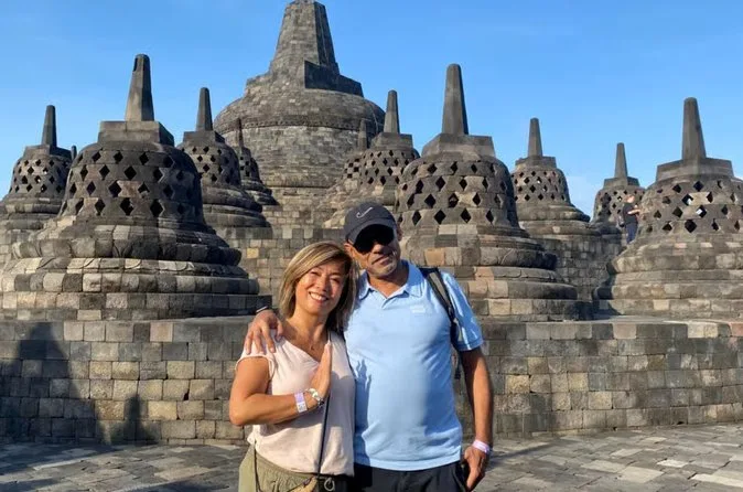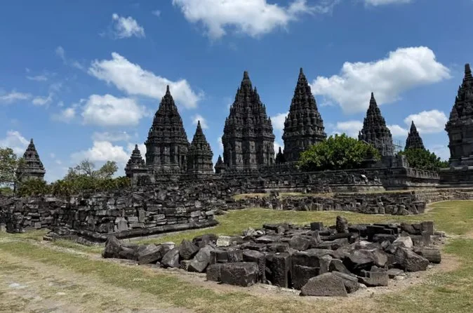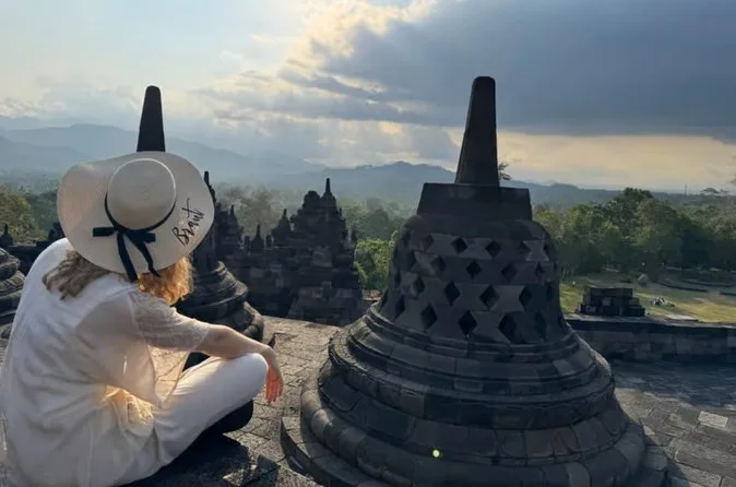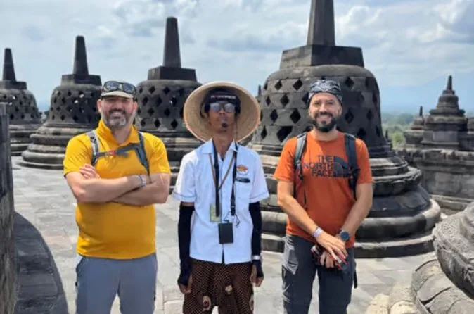 Steig vor den Massen auf Borobudur mit einem lokalen Guide, der jede Steinmetzarbeit kennt. Erkunde Prambanans beeindruckende Türme, während das Licht über die alten Reliefs tanzt. Genieße die bequeme Abholung vom Hotel und spar dir die Warteschlangen – konzentrier dich einfach aufs Tempelleben und vielleicht auf ein Lachen mit deinem Guide unterwegs.