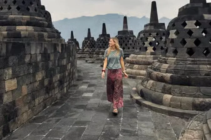 Das Erste, was mir auffiel, war der kühle Stein unter meiner Hand – glatter als gedacht, fast weich von Jahrhunderten berührter Oberfläche. Wir waren vor Sonnenaufgang in Yogyakarta losgefahren (die Fahrt hab ich kaum wahrgenommen), doch als wir Borobudur erreichten, lag schon der Duft von Räucherstäbchen in der Luft und die Vögel sangen. Unser Guide, Pak Agus, gab uns kleine Tücher, die wir um die Hüften binden sollten – er scherzte, das sei „Tempel-Mode“, zeigte uns aber genau, wie man sie richtig bindet. Mir gefiel, dass er uns beim steilen Aufstieg nicht hetzte, sondern Pausen erlaubte, auch wenn ich dabei kurz durchatmen musste und ein paar einheimische Kinder über meinen unbeholfenen Sarong kicherten.