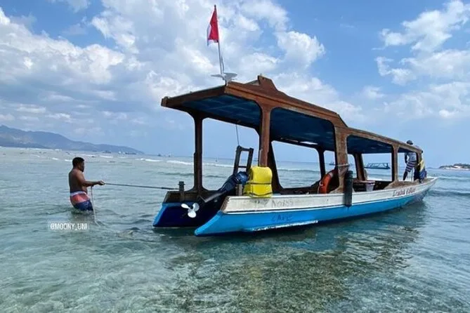 Dein privater Tag beinhaltet Schnorchelausrüstung und Eintritt für alle Spots, Transport mit dem Glasbodenboot zwischen den Inseln, Wasserflaschen während der Tour sowie ein traditionelles indonesisches Mittagessen direkt am Sandstrand von Gili Meno. Danach kannst du unter Palmen entspannen oder am ruhigen Strand schwimmen.