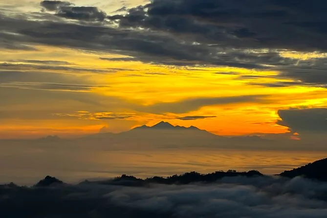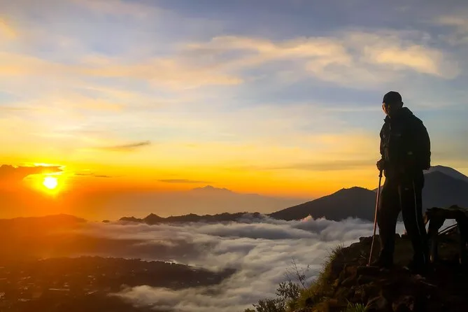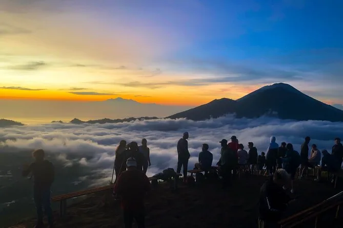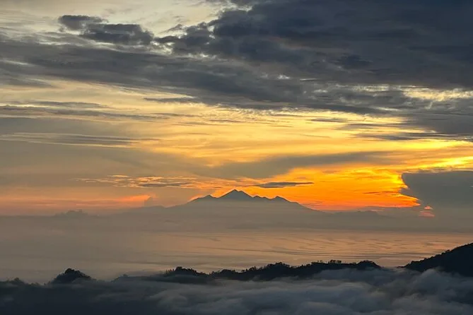 Erlebe den Sonnenaufgang über den Wolken am Mount Batur mit lokalem Guide und entspanne danach in den natürlichen heißen Quellen mit Blick auf den Batursee – inklusive privatem Transport und Frühstück.