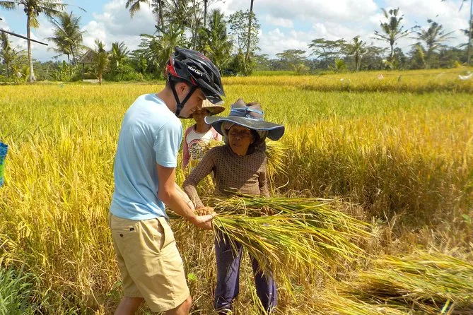 Du radelst mit dem E-Bike durch Ubods Reisfelder, hältst in ruhigen Dörfern mit deinem lokalen Guide und besuchst den Tirta Empul Tempel, um balinesische Rituale zu erleben. Zwischendurch gibt’s Zeit für Lachen, kleine Entdeckungen und ein traditionelles Mittagessen – und Erinnerungen, die länger bleiben als gedacht.