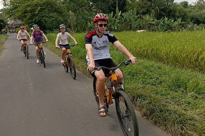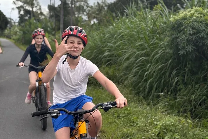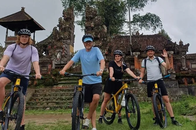 Dein Tag beinhaltet den Hoteltransfer im klimatisierten Fahrzeug, die Nutzung von Fahrrad und Helm, Wasserflaschen während der Fahrt, Eintrittsgelder für alle Stopps inklusive Tempel- und Familienhofbesuche sowie ein traditionelles balinesisches Mittagessen im Amertha Restaurant, bevor du am Nachmittag zurück ins Hotel gebracht wirst.