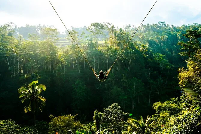 Du schlenderst durch Ububs wilden Monkey Forest (Achtung auf deine Tasche!), wanderst über die steilen Reisterrassen von Tegalalang mit Bauern in der Nähe, tauchst ein in die heiligen Rituale des Tirta Empul Tempels und schwingst dich auf die berühmte Dschungelschaukel über grüne Täler. Mit Mittagessen und Hoteltransfer fühlst du dich rundum gut betreut und ganz im Rhythmus von Bali.