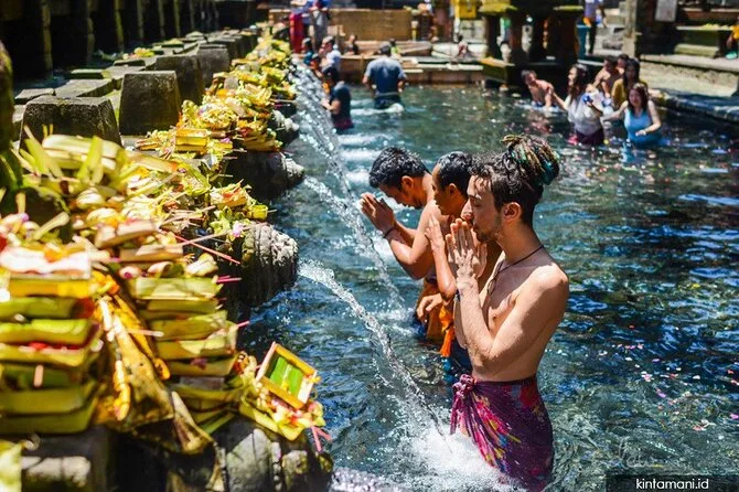 Als nächstes stand der Tirta Empul Tempel auf dem Programm – Putu zeigte uns, wie die Einheimischen hier ihre Reinigungsrituale machen und sich still an den Quellen anstellen. Er erklärte, dass jede Quelle eine eigene Bedeutung hat (ehrlich gesagt habe ich die Hälfte vergessen, aber ich erinnere mich noch an den kühlen Stein unter meinen Füßen und den Sandelholzduft, der überall in der Luft lag). Das Mittagessen gab es in einem offenen Lokal mit Blick auf weitere Reisfelder; einfaches Essen, nichts Aufwendiges, aber nach dem ganzen Herumlaufen am Vormittag schmeckte das Hühnchen besser als jedes Restaurantessen zu Hause.