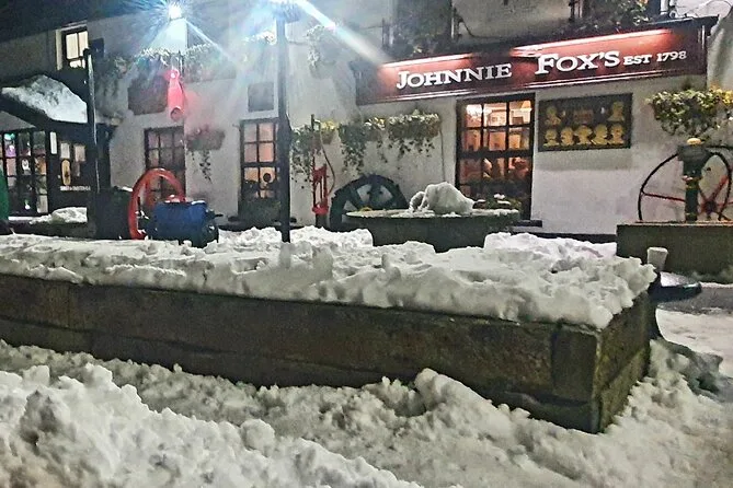 Dein Abend beginnt mit der Abholung im klimatisierten Fahrzeug aus dem Stadtgebiet Dublin, führt zu drei verschiedenen lokalen Pubs in den Dublin Mountains, wo du in Ruhe Craft-Bier oder Whiskey genießen kannst, plus traditionelle Live-Irische Musik an einem Stopp – alles begleitet von einem Guide, damit du entspannt jeden Moment genießen kannst und spätabends zurückfährst.